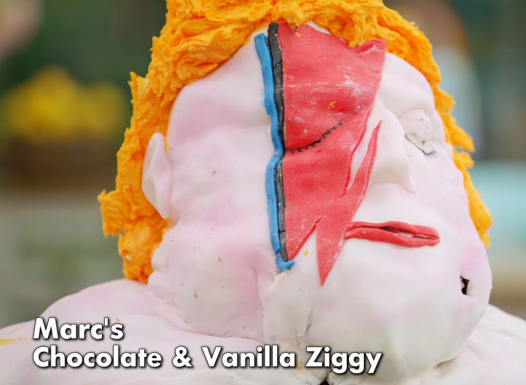 Re-imagining ice cream cake (in 4.5 hours) is the challenge for the showstopper, and it must contain a baked element. With the heat, ice cream will probably prove to be a difficult ingredient to work with for this challenge… Matt lets us know the bakers will be using ice cream makers, so at least that’s one hurdle seemingly overcome in the battle with the heat? The bakers certainly take some risks: Dave plans to pipe ice cream on top of his cake, while Lottie plans to coat her entire cake all around in chocolate ice cream. Laura’s ice cream doesn’t turn out because she forgets to turn on the ice setting; she’s left with a chocolate mixture – she turns on the ice setting and chucks in the freezer.