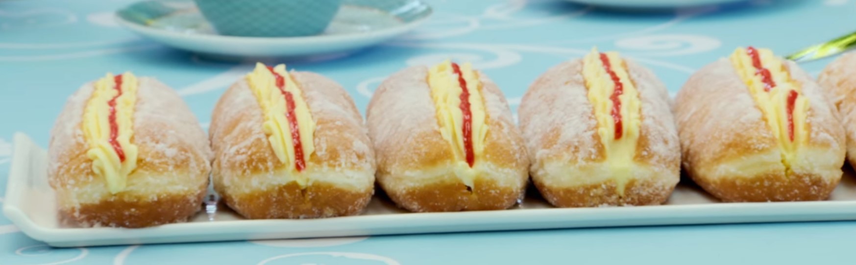Paul’s advice for his challenge is to ‘watch the color for the end product.’ #Cryptic! The goal for the bakers is to make 6 custard and jam finger donuts. Again, Paul stresses deep frying in the extreme heat will prove difficult. Both Peter and Lottie mention they’re not looking forward to deep frying…